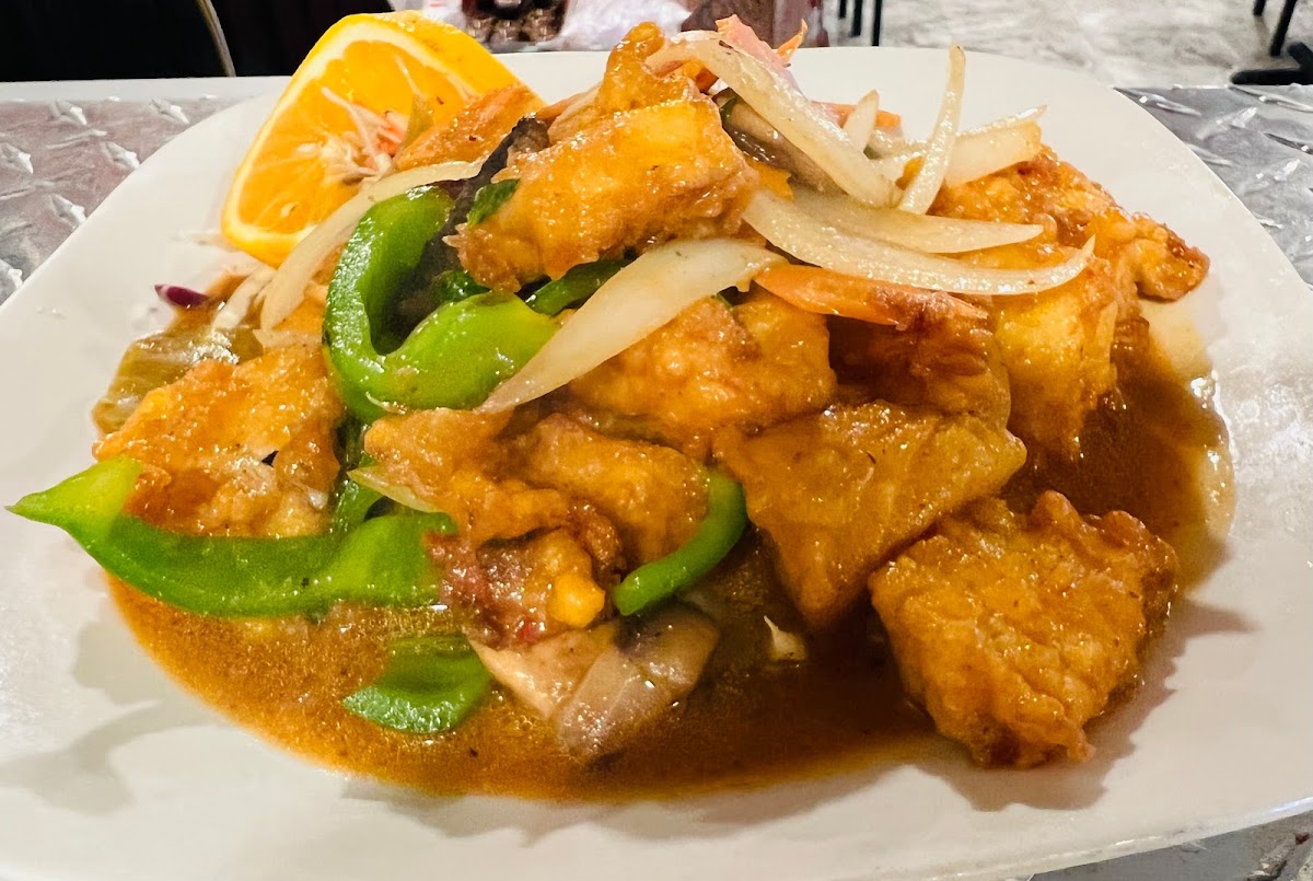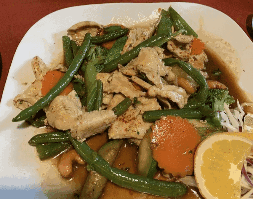 Another standout is the Tom Kha Coconut, a creamy, fragrant soup that will transport your senses to Thailand with every spoonful. The combination of tender chicken, mushrooms, and the smooth coconut broth offers a truly satisfying experience. If you’re in the mood for fish, the Pla Pad Ped Tilapia offers a crispy, flavorful option, with tilapia served in a spicy stir-fried sauce filled with herbs and veggies.