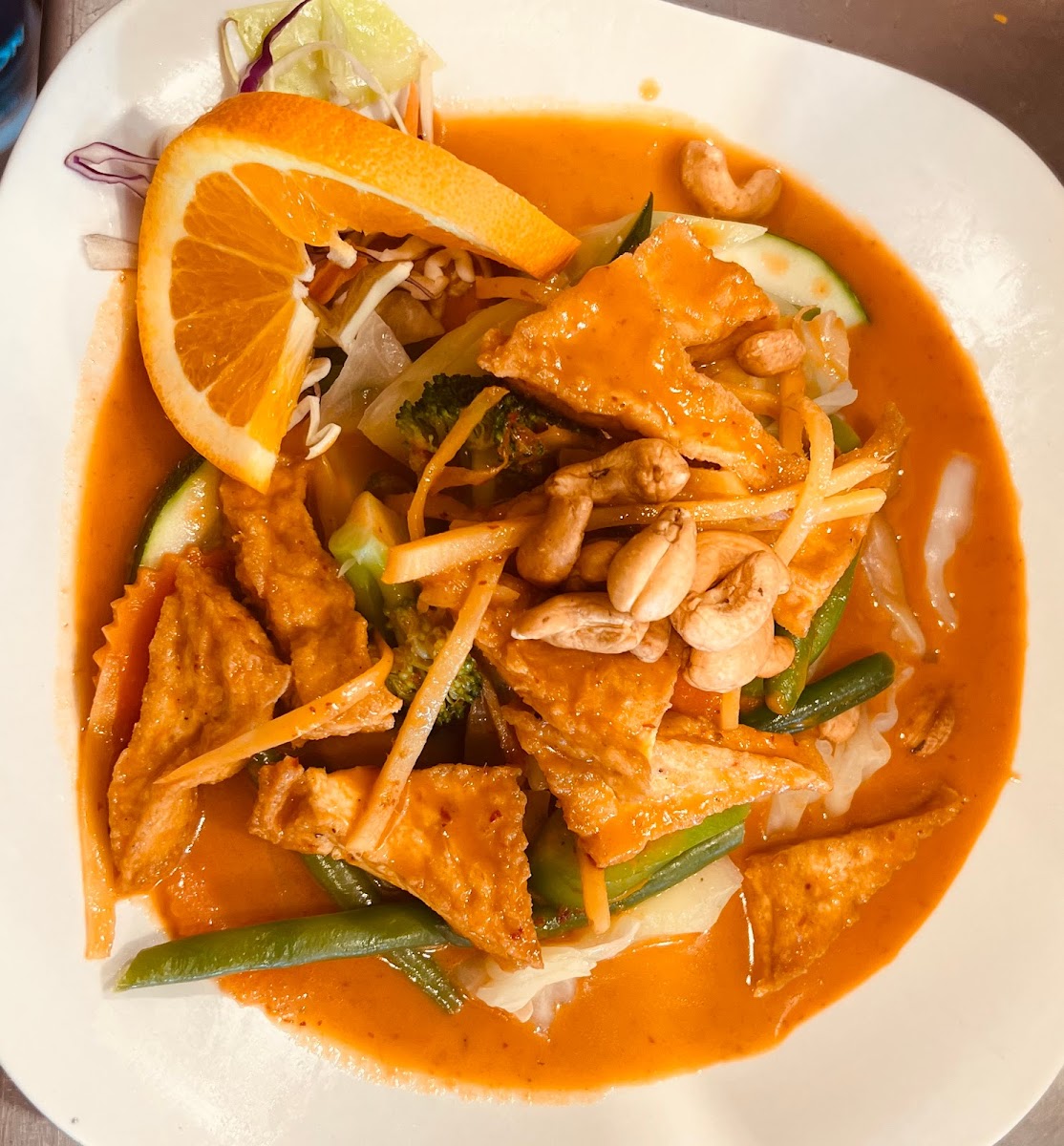 For those who enjoy a slightly milder yet equally flavorful dish, the Massaman Curry is a great choice. Known for its mild sweetness and earthy spices, this curry combines tender meat (or tofu) with potatoes, peanuts, and coconut milk. It’s the perfect balance of creamy and savory, with just a hint of spice.